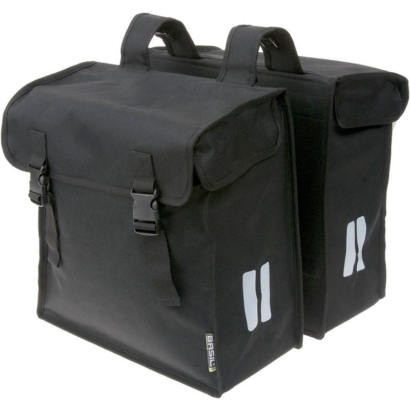 Basil Mara XXL dvostruka torba teži 1,8 kg, dolazi u elegantnoj crnoj boji i montira se pomoću traka.